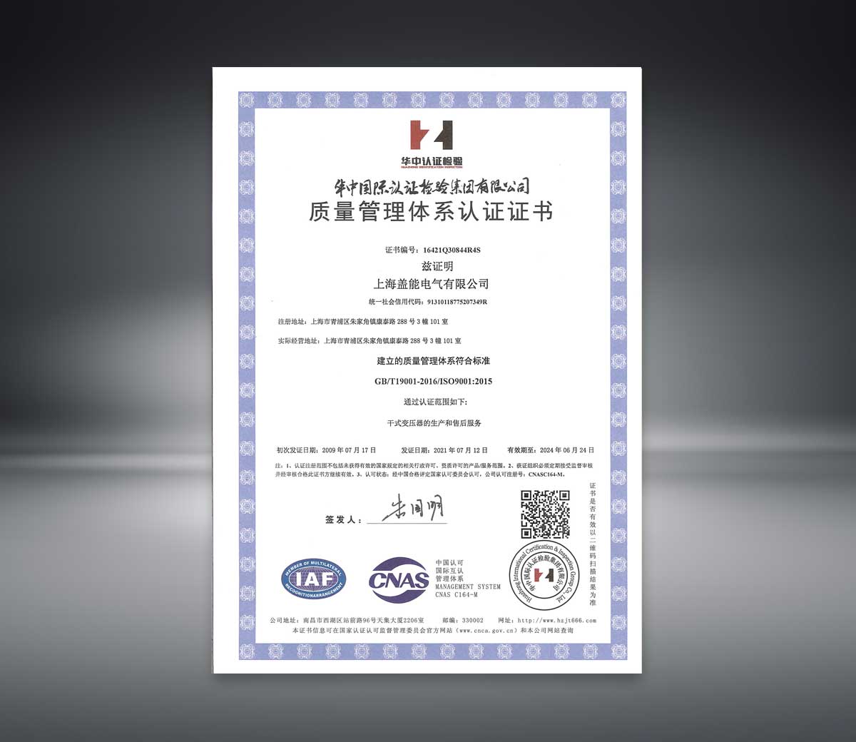 上海蓋能電氣有限公司干式變壓器